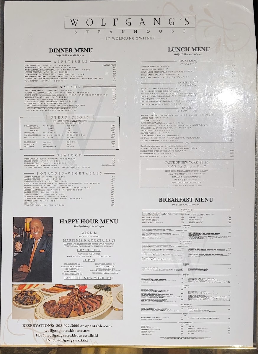 Wolfgang's Steakhouse Waikiki Menu (2025 Update)